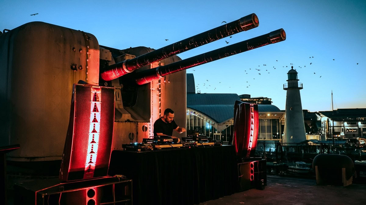 Described on the posters as a โsound and culinary experience,โ the sunset parties are put together as a collaboration between the Australian National Maritime Museum, the annual Electronic Music Conference, and down-tempo mix series Lazydaze. With them putting together the programs, Audamus jumped into the transform the helipad of the HMAS Vampire into an appropriate setting for pinics.