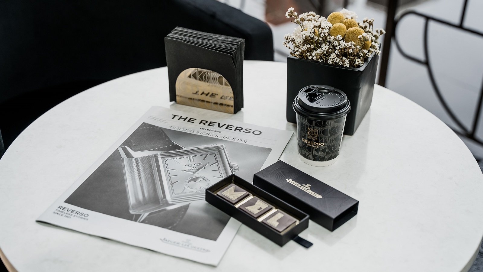 A temporary presence down at Circular Quay, just in front of the Museum of Contemporary Art, the unique new pop-up has been fashioned to celebrate La Grande Maisonโs new 1931 Alphabet, which draws its elegant design from a collaboration with lettering artist Alex Trochut. As such, design details for the 1931 Cafe strongly represent the heritage watchmaker, complemented by complimentary beverages and Swiss chocolates.