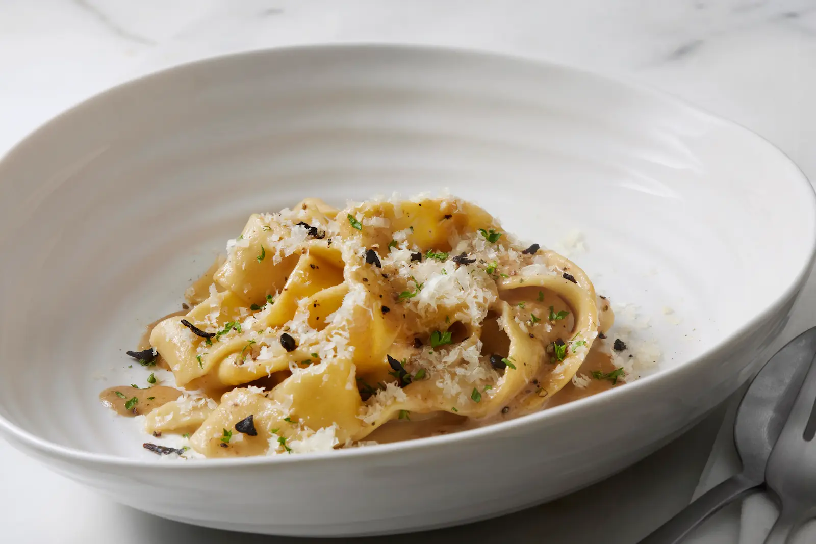 Delightful little snaps of peppercorn; a velvety emulsion that comes together with the fewest of pantry staples; on the table in 30 minutes โ if that isnโt sprezzatura in the kitchen, we donโt know what is.