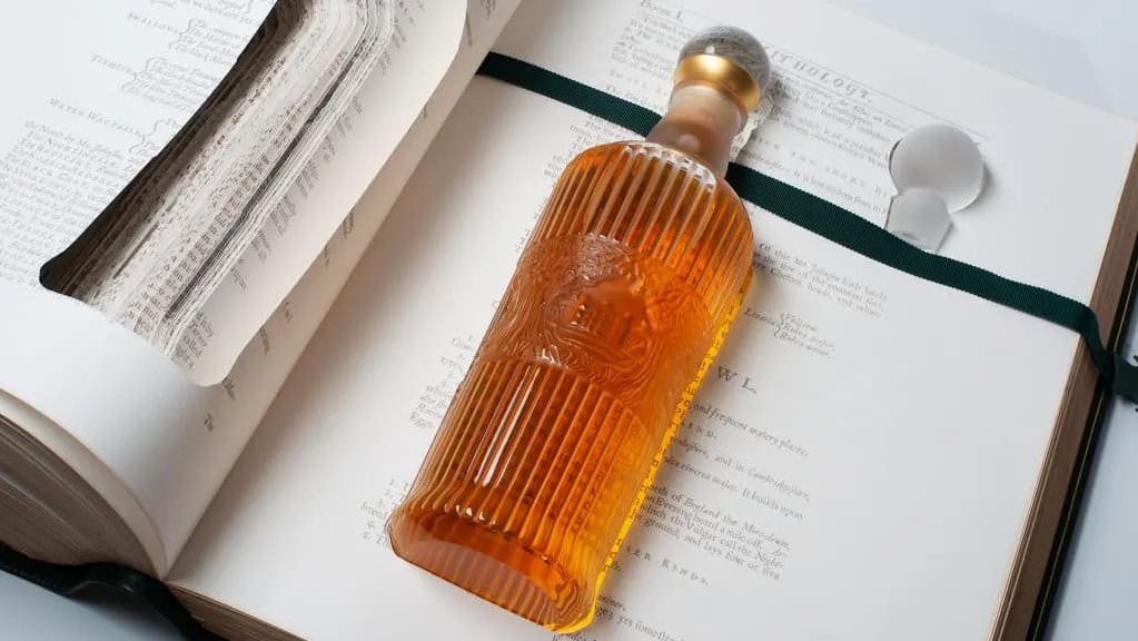 As youโd expect for such a rare single malt, the Tales of The Macallan Volume 1 arrives in a specially designed crystal decanter designed by the French crystal maker Lalique. The Lalique decanter arrives snugly tucked away in an 800-page leather-bound book, which contains a series of drawings by the British artist, Andrew Davidson.