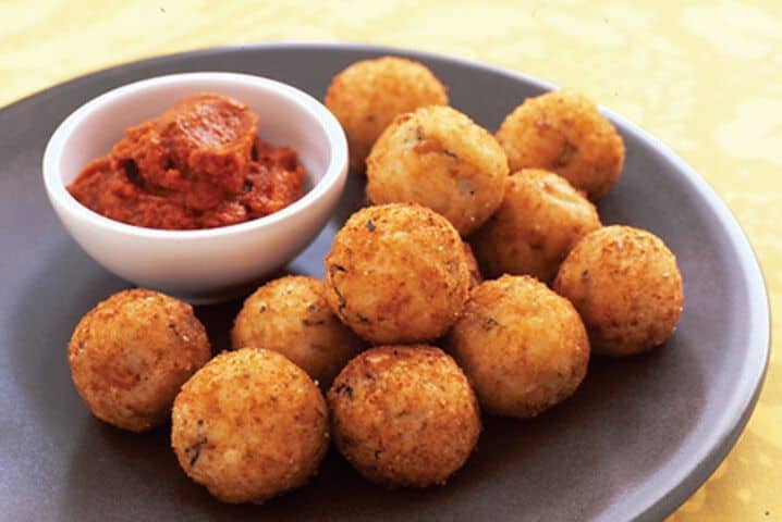 - Roll the rice mixture into balls, no larger than three tablespoons worth. If you really want to level up the experience, roll it into a ball and stick a cube of cheese in the centre. Though keep in mind you might want to reduce the amount of cheese already mixed into the rice from earlier steps if you so choose to.