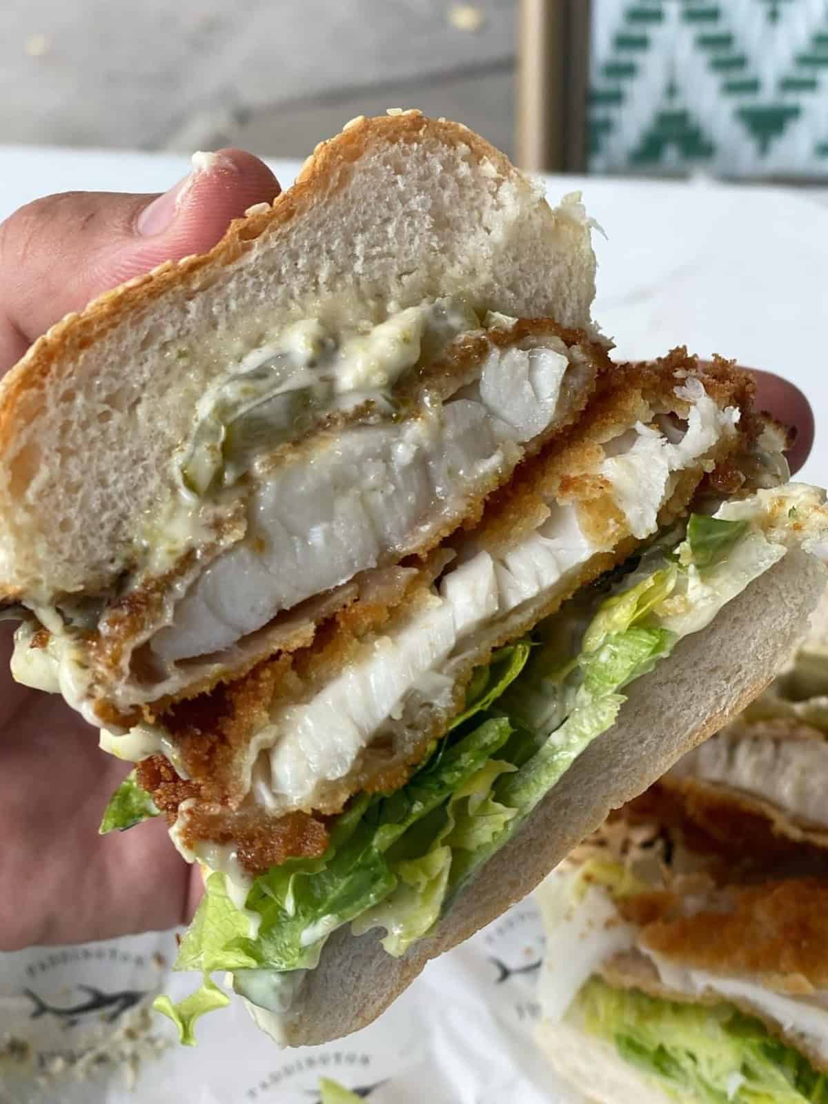 What regulars routinely double back for, however, is the fish burger. More specifically, โJulienโs famousโ iteration. Basically a full-blown brunch special: this burger is built on a foundation of succulent fried fish, loaded with about a bajillion extras including a soft egg, grilled pineapple, cheese, carrot, and the shopโs house-made chilli mayo.