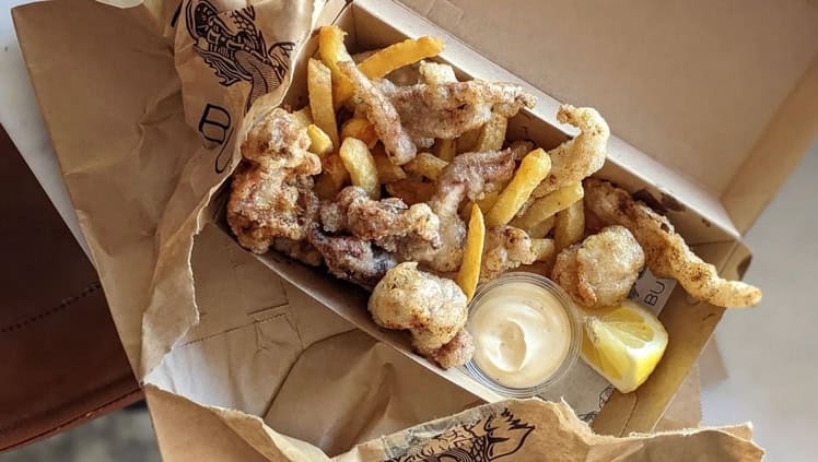 Truthfully though, youโll find a lot of this chippieโs best morsels off-menu. The Fishbox updates its Instagram account regularly, and itโs here that you will catch wind of its excellent specials. For what is nominally a fast food joint, these one-offs are all unusually seasonal: ranging from a cold prawn & avo salad (perfect during the first quarter of the year) to the Clam Chowder โ a local favourite served during colder months, cobb loaf-style.