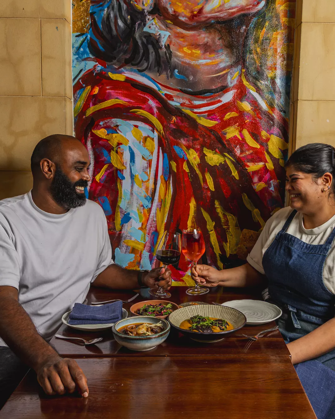Self-described as a “love letter to Bengali cuisine and culture,” Kolkata Social was set up by the team behind Colombo, Kabul, and Kyiv Social. The team’s latest venue is a vibrant tribute to chef Ahana Dutt’s West Bengal roots and her mother Sharmila’s home cooking.