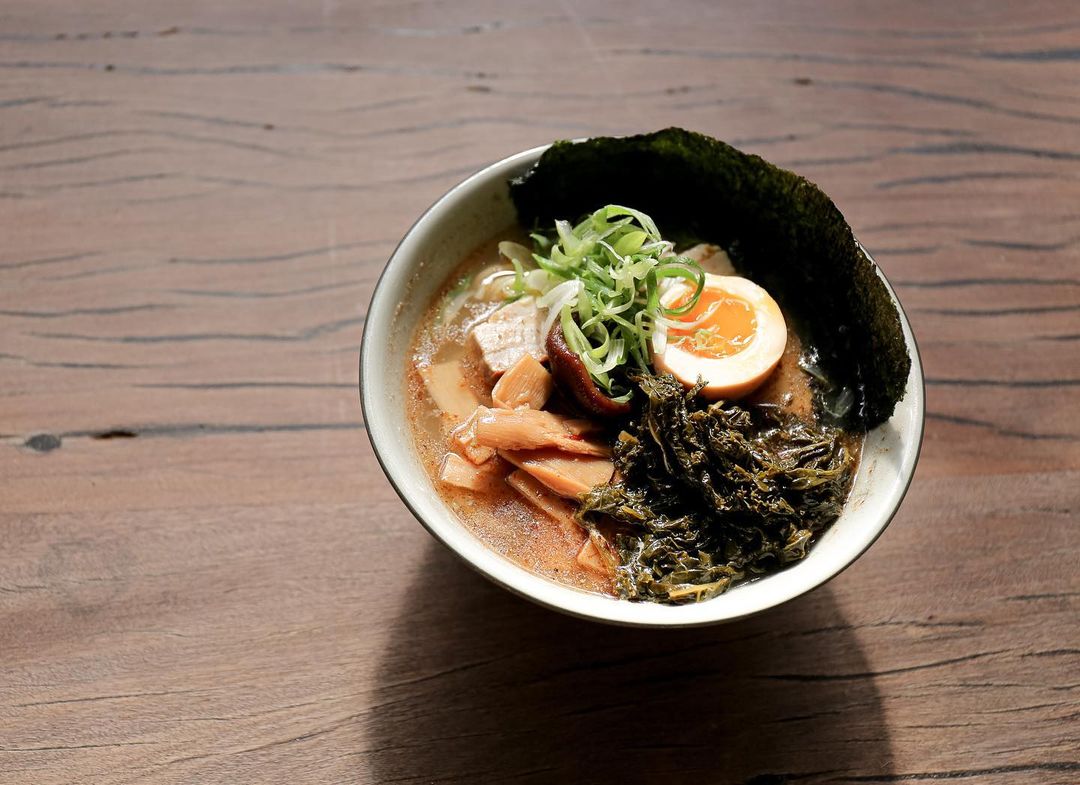 The signature Tokyo-style shoyu ramen is laden with a soy egg, roast pork, watercress and crunchy menma (fermented bamboo); thereโs a seafood option, topped with fresh prawn balls and scallop silk; and chicken soup tori paitan that is as delightfully unctuous as it is collagen-heavy.
