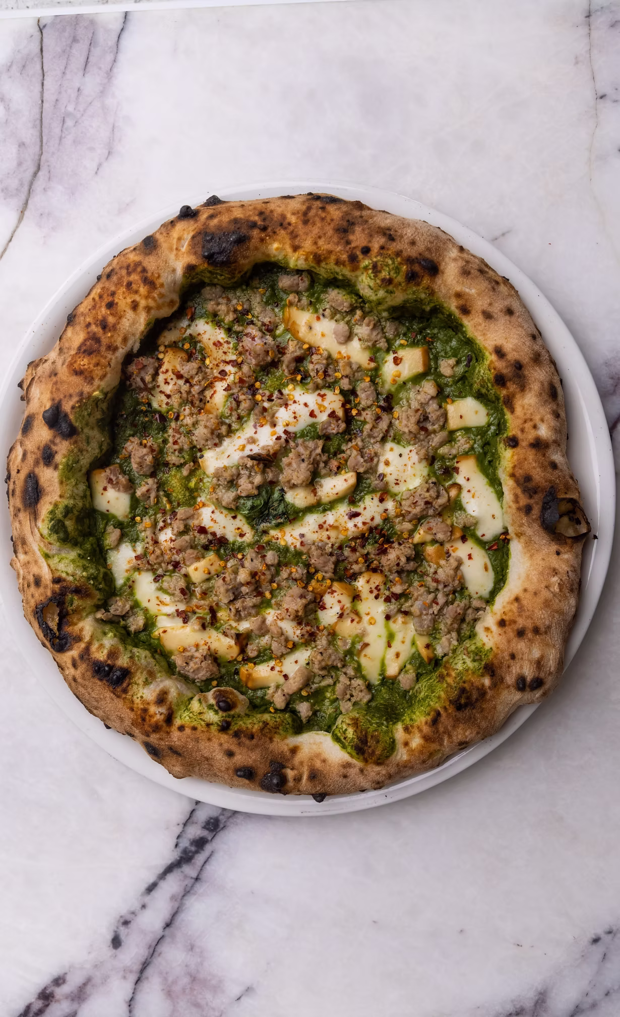 As for the dough? Weโd all but insist you upgrade to the version (for a princely surcharge of $3) using stone-ground flour. Grains milled in this method are not exposed to high, industrial temperatures. The end result? A lighter, fluffier pizza base that also happens to be more nutritious than the typical โ00โ flour option.
