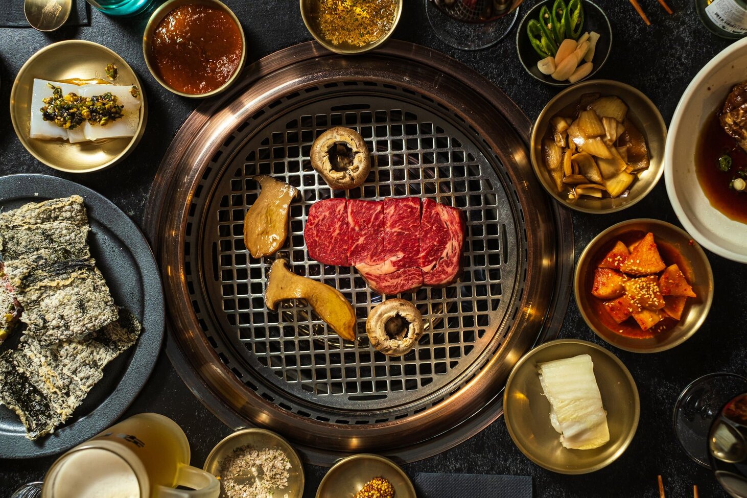 Along with the requisite steamed rice, noodles and slightly spicy kimchi, grab some top-quality beef ribs, bulgogi and marinated pork if you want the standard meal sitting on your table ready for you to cook, charcoal and taste.