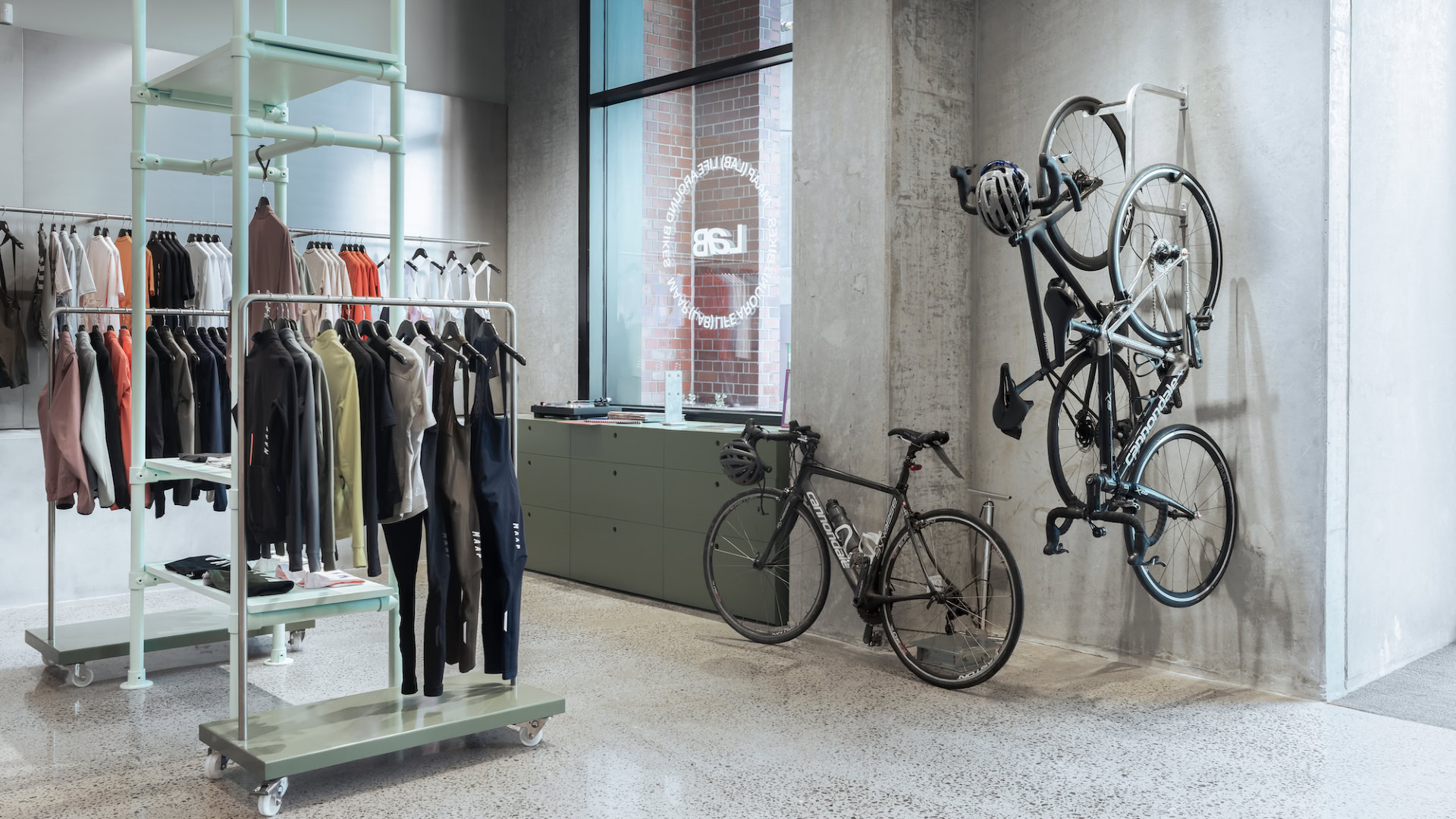 Centrally located in Collingwood, the fit-out was designed by Clare Cousins Architects in collaboration with the MAAP design team, in a project that was led by Oliver Duff. Instead of a simple retail space, the design looks to create an environment where people can meet before or after a ride, grab a coffee from the in-house barista, or simply come and check out a specific product.