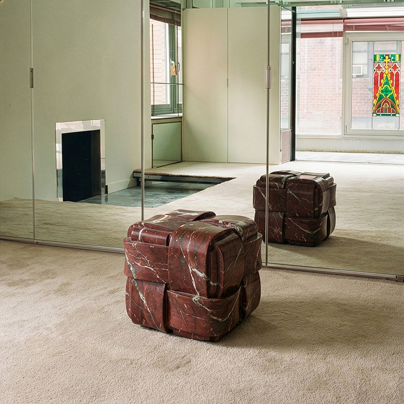 Essentially a 45cm cube of solid marble, it’s been honed to a soft sheen that lets those burgundy veins do the talking. Handcrafted in Portugal, each piece is signed and numbered, with only 8 made (plus one artist’s proof).