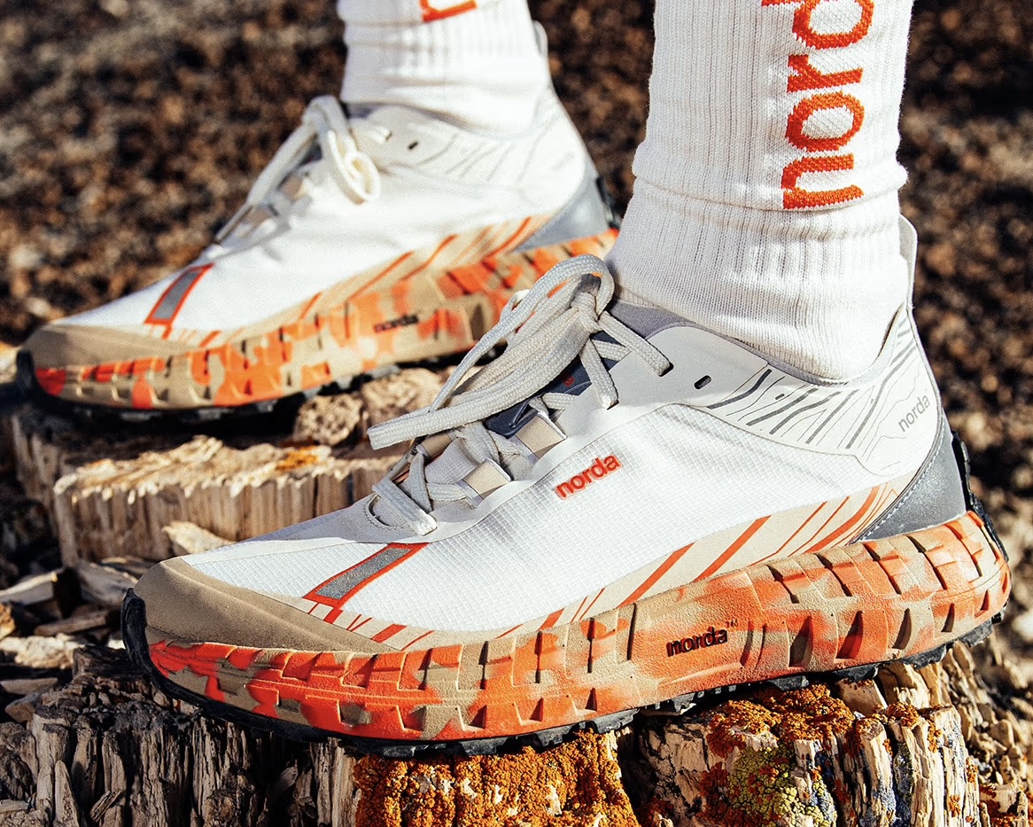 This Ray Zahab collaboration (supporting impossible2possible) takes norda’s cult 001A formula and dials it up, featuring a seamless Bio-Dyneema upper for absurd strength-to-weight, a springy Arnitel midsole, and an exclusive Vibram Litebase Megagrip soleplate with 5mm lugs for proper bite.