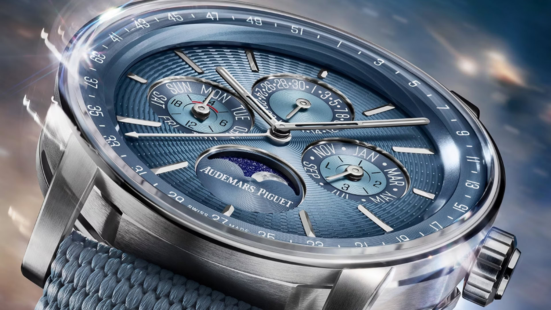 To compound this victory lap, youโve got a refinement of the (already updated) Code 11.59 design language. The dialโs radial blue PVD decoration yields a great canvas for the classic four-register calendar layout. Better still, 150 will be made with a unique โAudemars Piguetโ signature in cursive โ a nod to historic documents of the House and, you guessed it, APโs 150th birthday.