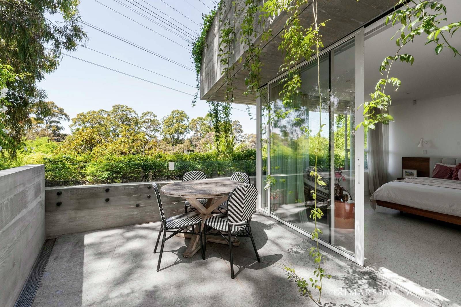 108 St Georges Road, Toorak, hadnโt received much more than a lick of paint since Bellโs work more than half a century ago โ fortunately, the Raidstudio renovation โ led by architect Nicholas Ruljancich โ was as ambitious as it was well-executed. The house as it stands today is one of Melbourneโs more impressive, presents a cascading series of verdant balconies, a well-appointed interior and plenty of privacy.