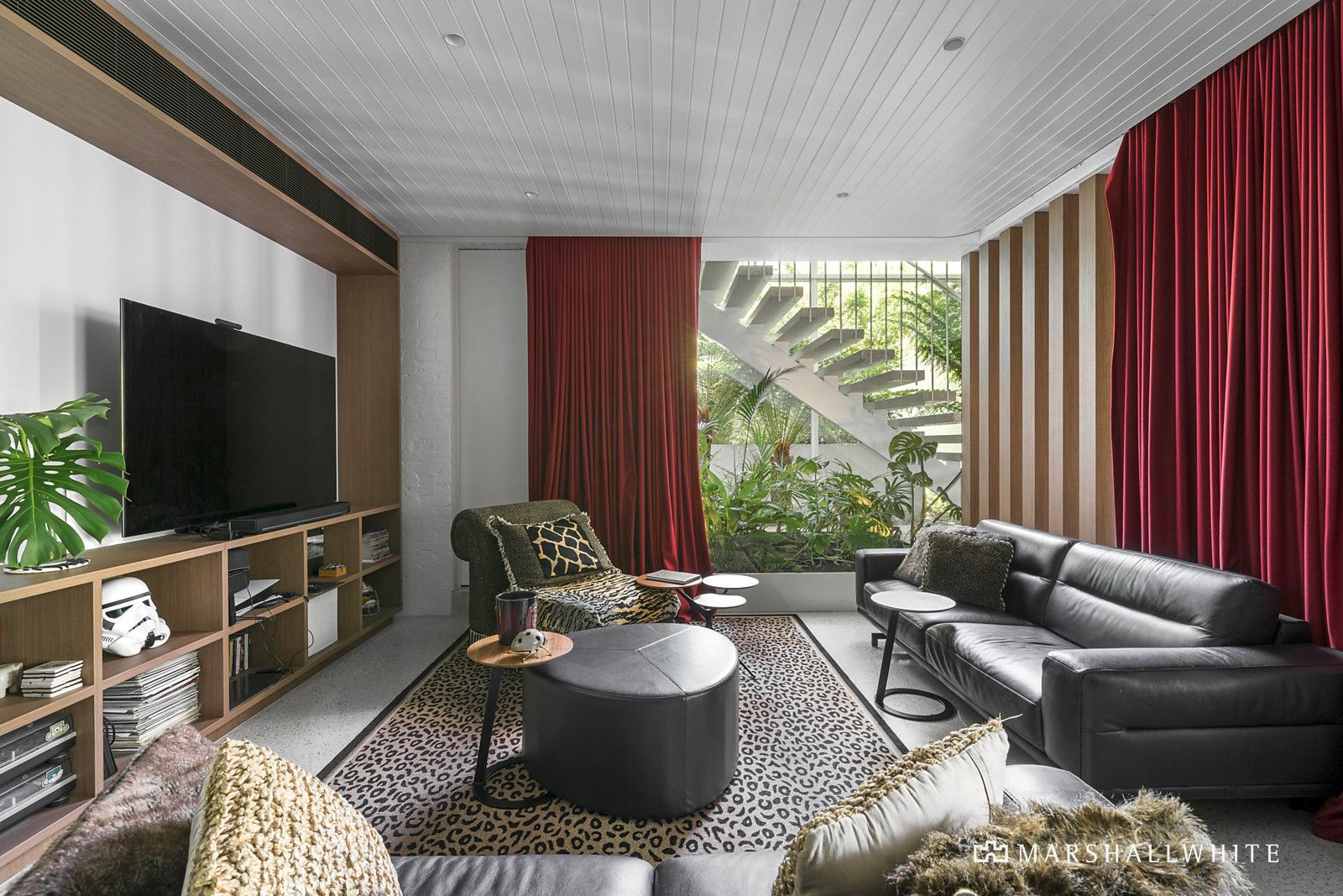 Originally designed in 1965 by the widely celebrated Australian architect Guilford Bell, the home was sold most recently in 2013 and shortly after, underwent a four-and-a-half-year renovation to restore it to its former glory. Bellโs resume is an extensive one, including time in England working on homes for Agatha Christie, the design of The Simon house in Mt Eliza (for which he was awarded the 1964 Victorian Architectural Medal), and overseeing the construction of the once-great Royal Hayman Hotel.