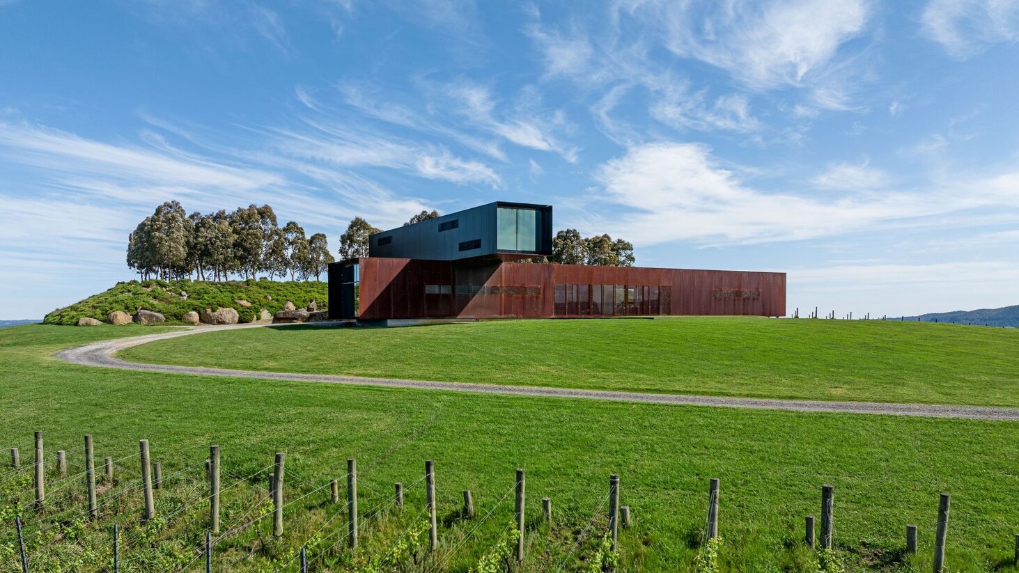 Before we arrive at the eye-catching cantilevered residence, itโs worth noting this farm boasts two private dams, a working winery, and an air-conditioned package goods store. On top of that, much of the property has been planted with Pinot Noir, Cabernet, Nebbiolo, Shiraz, Ribolla Gialla and Chardonnay vines that present a very real career-changing opportunity to establish Victoriaโs next boutique winemaker.