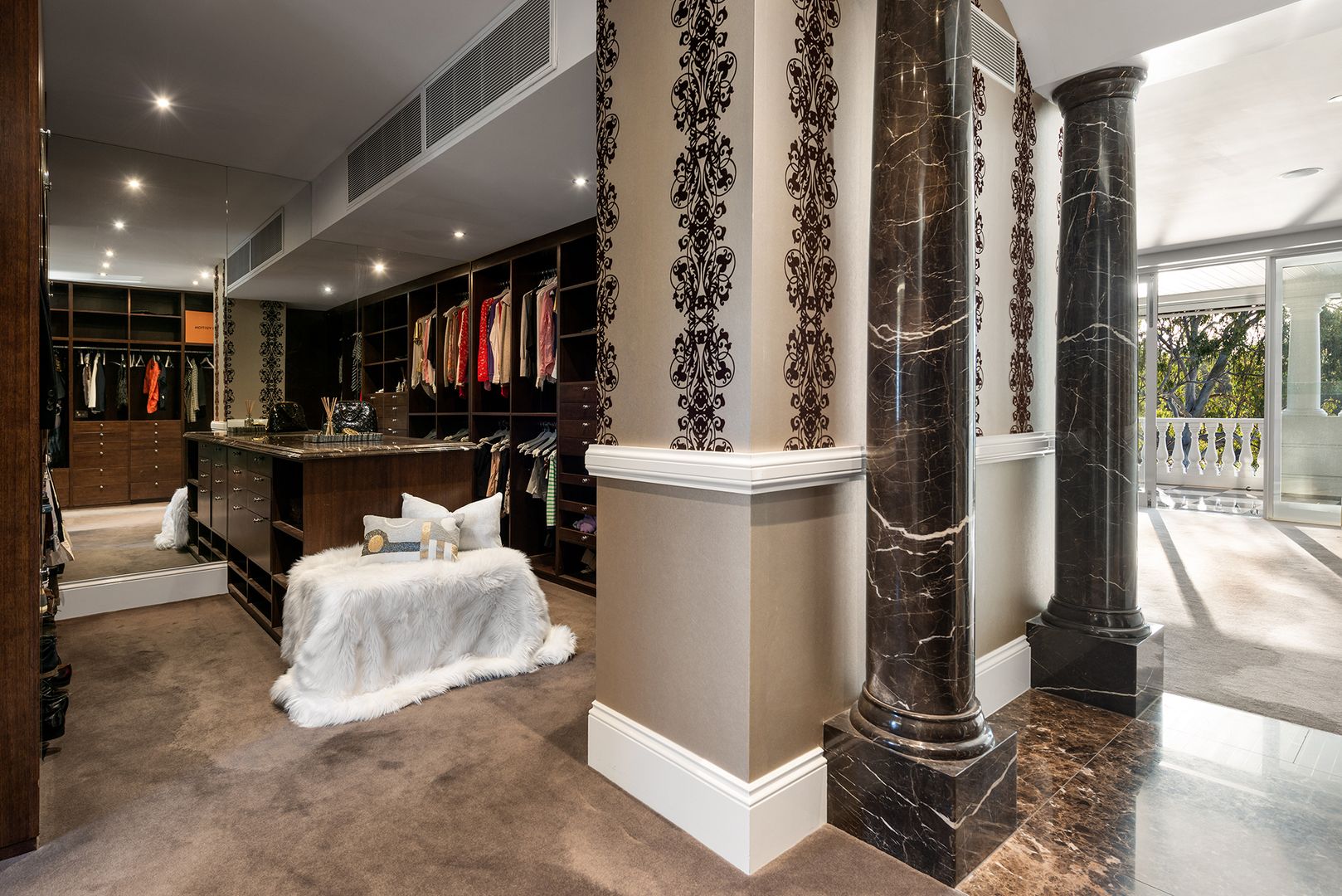 On the upper level is where you’ll find five bedrooms, most of which feature both ensuite bathrooms and walk-in robes, while the enormous master bedroom is as large as many one-bedroom apartments and boasts a dressing room and an ensuite bathroom with a spa. Four of the five bedrooms enjoy double doors that open up onto the 133m² balcony, which serves up views over the gardens at the rear of the property and out across the Brisbane River and the St Lucia Golf Course beyond.
