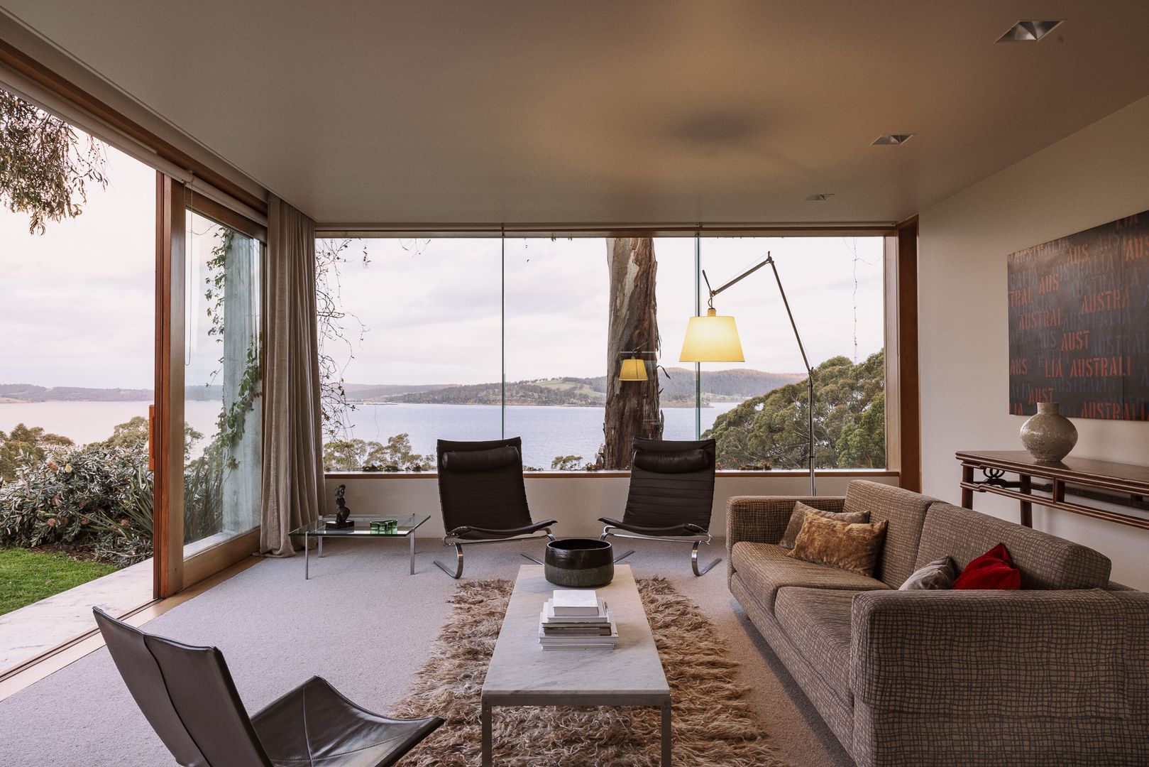 The original home was constructed more than four decades ago by Australian architect Ray Heffernan, responsible for a number of distinct homes in Tasmania and despite retiring in 2007, was closely involved in the renovation of Trial Bay House that was completed in 2010. The current owners of the home first purchased the property back in 2002 and decided to add to Heffernanโs original design with the construction of a new living room, courtyard and garage, as well as changing the internal walls and internal and external openings.
