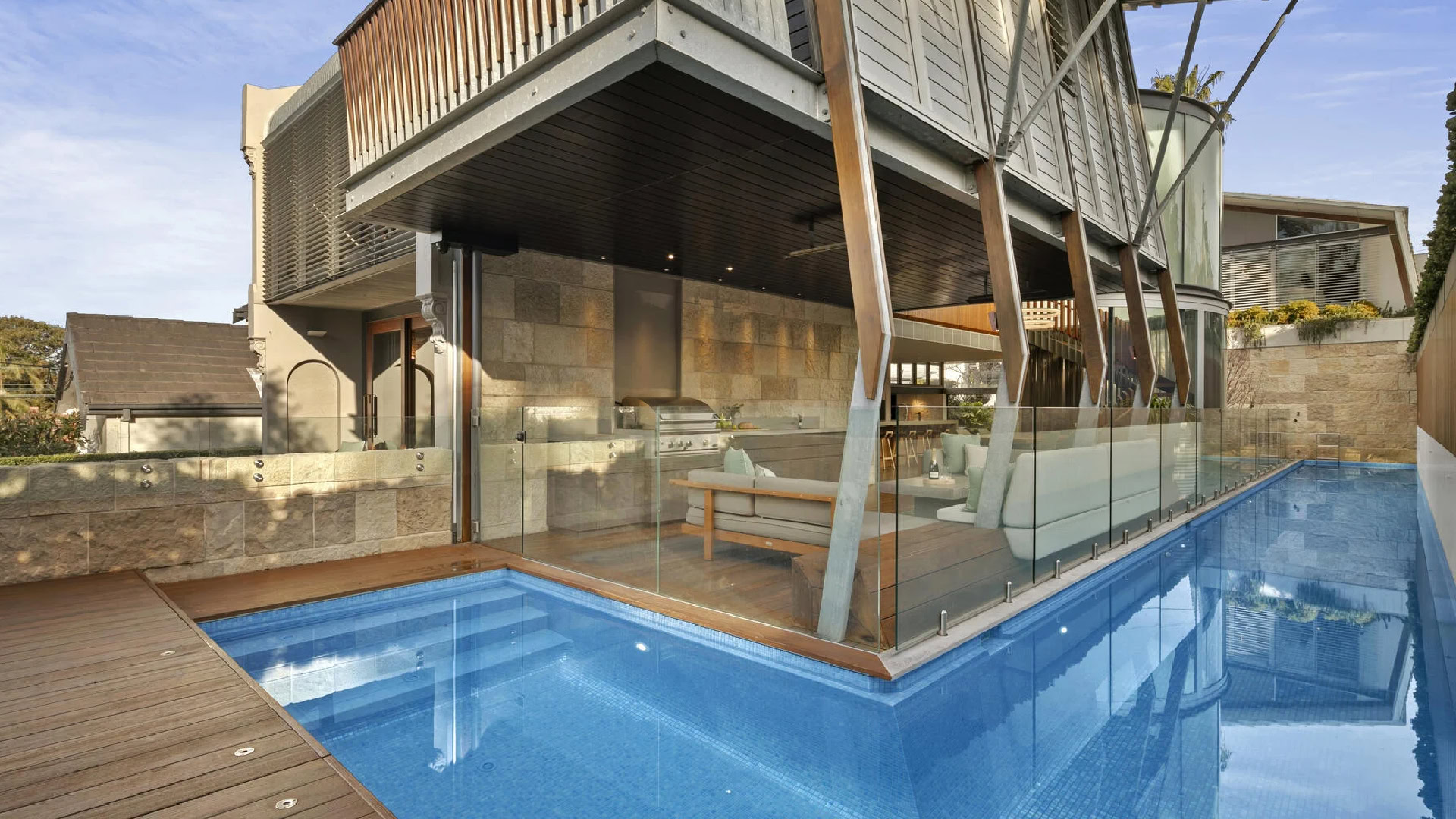 Originally just a humble terrace less than a mile from the golden sands of Bronte Beach, the property has been transformed into an architectโs delight that spans four levels, while still having space on the 473mยฒ block for front gardens, a rear courtyard and a heated outdoor pool. Boasting no less than six bedrooms, four bathrooms and space for a trio of cars to be parked off the street, the residence also hides some of the most impressive amenities weโve seen in a home like this.