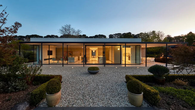 Against such a stunning natural backdrop, itโs no wonder that 88 Honour Avenue, Macedon celebrates its environment with such vigour, surrounded by lush gardens and a network of interconnected pavilions and courtyards. While the residence features three bedrooms and three bathrooms, its 1.5-acre block has been designed with a tasteful serenity that sees more done with less, maximising the light that enters the home to great effect.