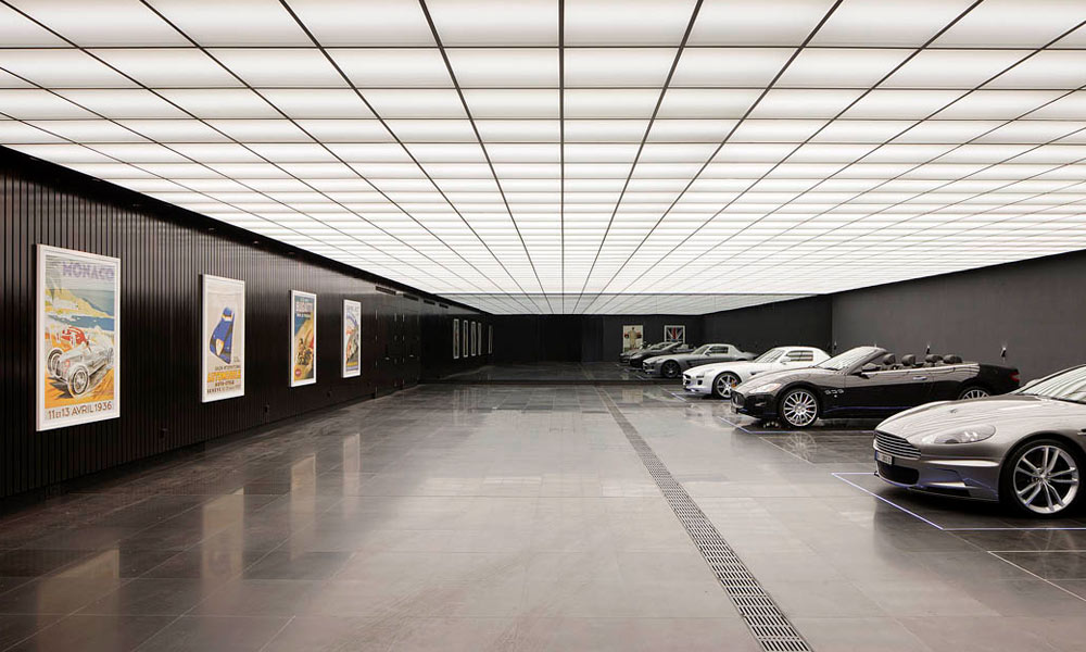 While the whole property is stunning, the piece de resistance is undoubtedly the incredibly cool underground garage, which is accessed from a door that opens up out of the tennis court and reveals a pretty stunning car collection (we count an SLS, DBS, and Gran Turismo) in bays individually lit by LEDโs, with a granite floor and panel lighting covering the roof.