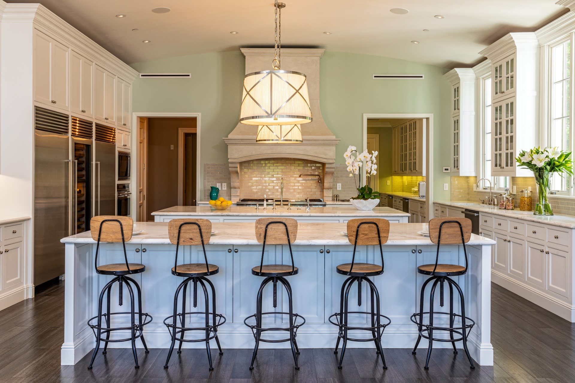 โAlso on the main level is a free-flowing, professionally equipped kitchen with a stunning stone range hood, a bar with seating for five, and a sunny breakfast nook that opens onto the back terrace.โ