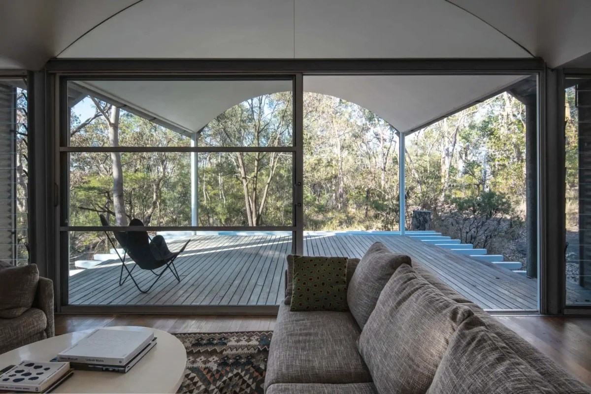 This architecturally significant Glenn Murcutt-designed NSW home was originally built for artists Sydney Ball and Lynne Eastaway in 1983, taking home the prestigious Wilkinson Award for residential architecture the following year, presenting judges with a long, low corrugated iron-clad house with a gently curved roof, sited on a sandstone platform on the highest point of the land.