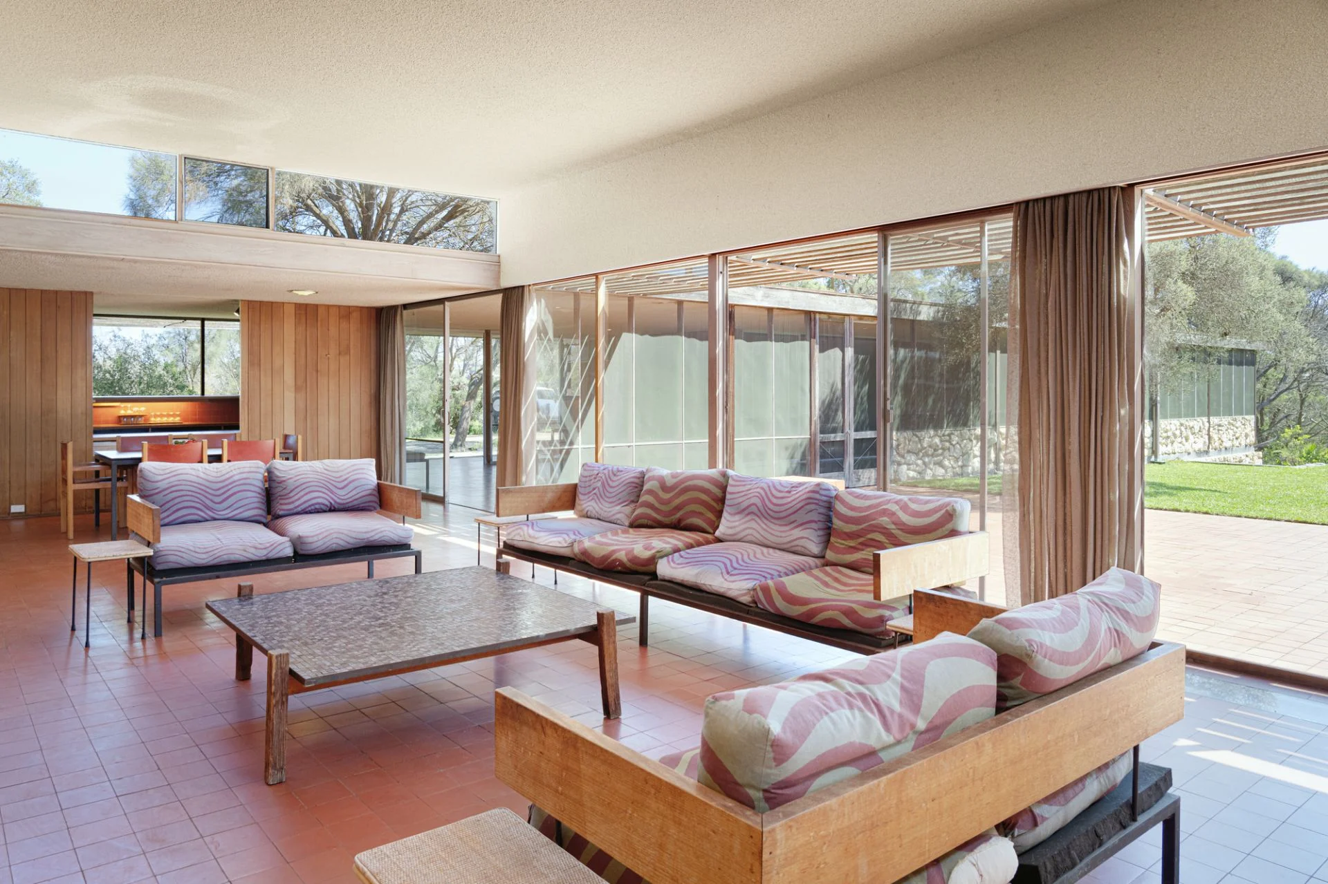 Floor-to-ceiling glass, cedar panelling, and terracotta tiles express a radical clarity of living, rewarded with the Victorian Architecture Medal in 1963.