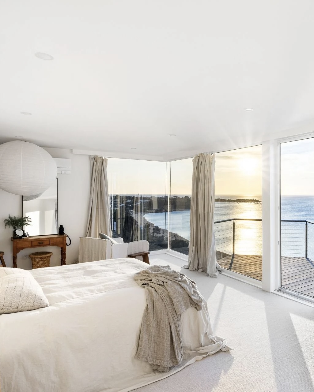 Every line, every angle, feels intentional, from the sweeping cedar curves to the atrium-like spaces that dissolve the boundary between indoors and out. Vast panes of glass frame uninterrupted views of the harbour, while timber and stone ground the home in its coastal setting.