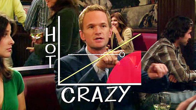 In case you need a refresher, the Hot Crazy Matrix maps a person’s level of ‘hotness’ (looks), against their level of ‘crazy’ (personality). Barney’s guiding principle was equilibrium. A girl or guy is allowed to be as equally crazy as they are hot. His views were expanded upon by gun-toting Texan Lawyer Dana McLendon, whose OG YouTube lecture and subsequent copies are still educating millions of us to this day.