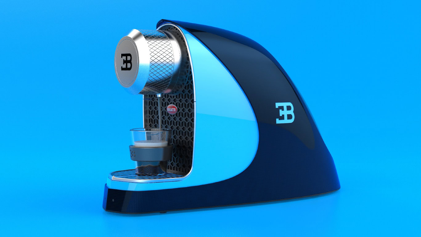The concept renders before you have been designed by Fรกbio Martins, a product/transportation designer based in Portugal. With the Nespresso C100 Essenza espresso machine as the base, Martins introduced elements from the Chiron, ranging from materials like titanium, aluminium, carbon fibre; even replicating the Chironโs grille where the pods insert, and of course, finishing it all up with the iconic baby-blue.
