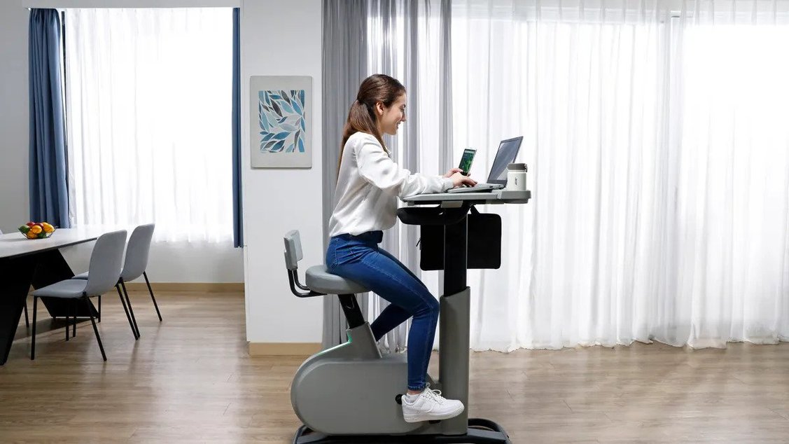 The stationary bikeโs desktop and casing have been built with post-consumer recycled plastic with an adjustable seat and desk height, as well as a bag hook, USB ports and a beverage holder. The bikeโs resistance doesnโt seem to be too intense to distract you from your actual work, rather offering light exercise to help make your workout and work day a bit more efficient.