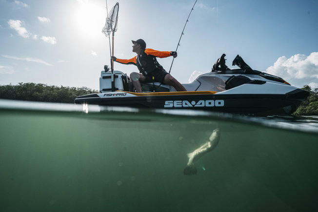 The 2019 Sea-Doo โFish Proโ is claiming to be the first personal watercraft ever built to be factory fitted for fishing. Featuring a removable fishing cooler, Garmin Navigation and a fish finder to ensure you donโt miss a catch. See the Fish Pro bad boy in action below and pop it at the top of that wish list.