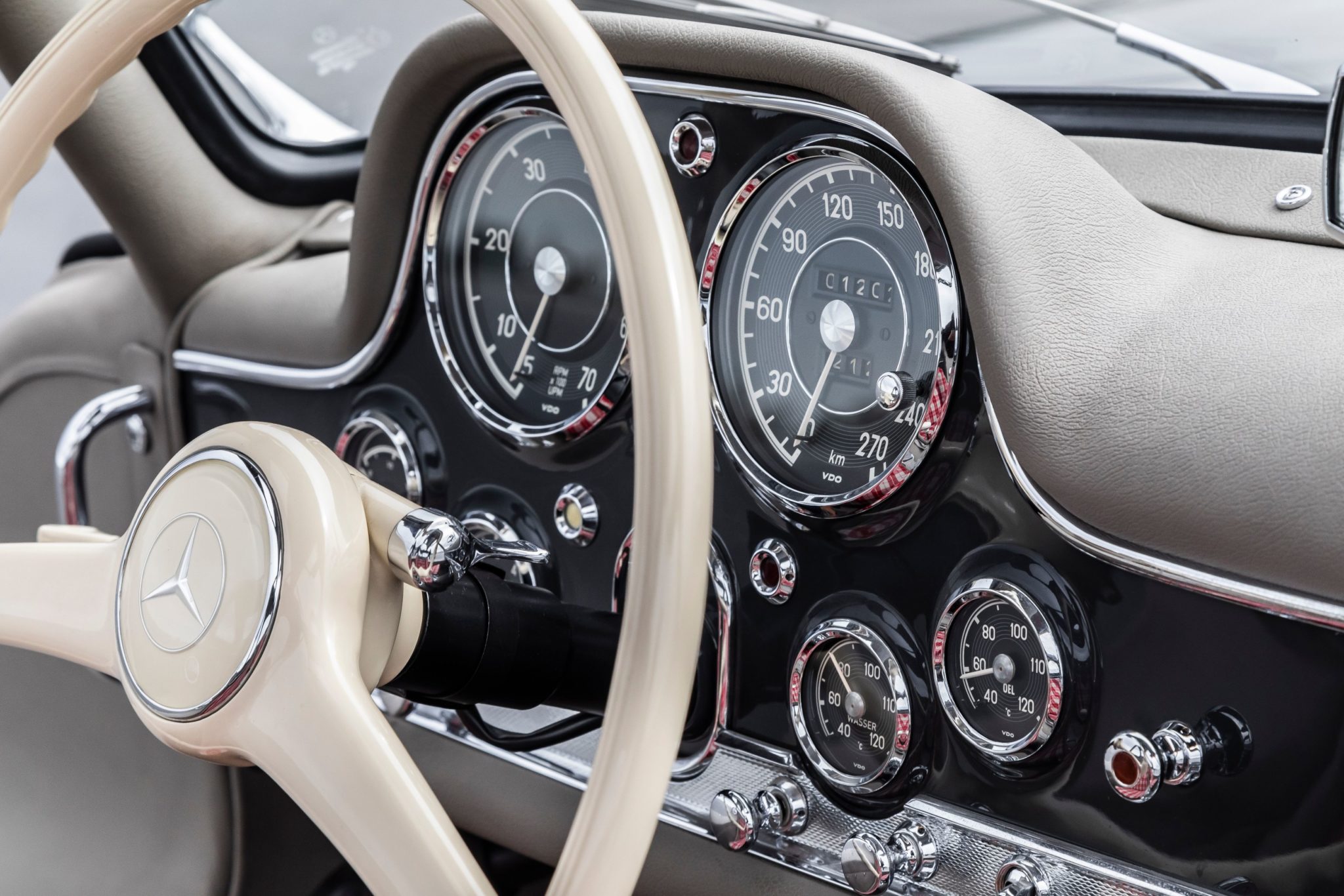 The 300SL Gullwing you see before you was originally assembled on September 3rd of 1955. Shipped to Austria later that month, it would spend some thirty years with the same owner. Fast forward to 2014, this old boy was acquired out of New York for restoration. The process encompassed anything from rebuilding the original fuel-injected 3.0-litre inline six to achieving its original factory colour (graphite grey over light grey leather).