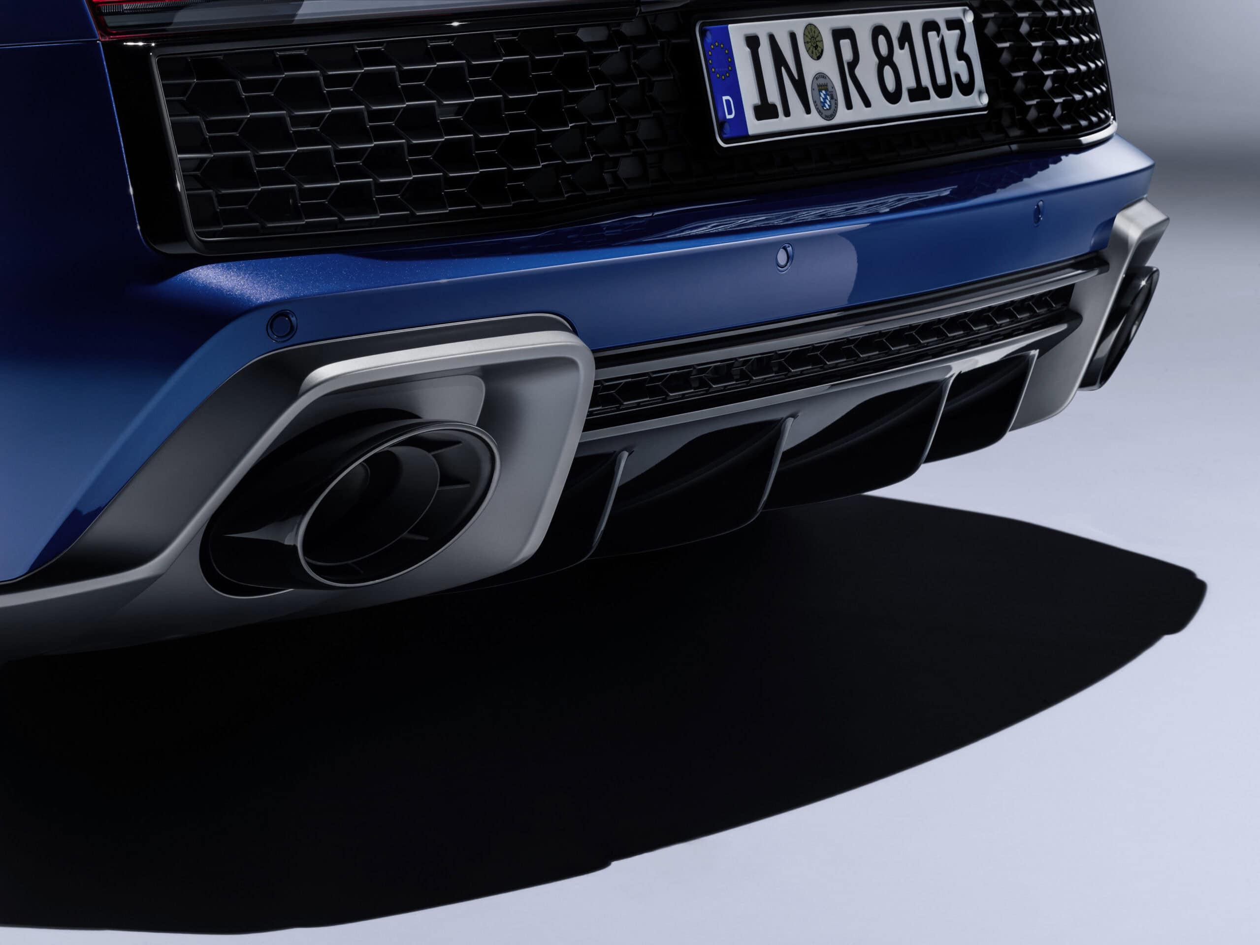 Finally, the bodywork an Audi R8 deserves. Along with an aggressive, more chiselled exterior, the 2019 Audi R8 boasts more power (though itโs yet to be confirmed exactly how much), new and bolder colourways, along with a completely re-vamped rear end. Similar to the RS6, the new R8 features oval-shaped tailpipes as opposed to the previously boxed exhausts, though only one photo of the new rear has been officially shared.