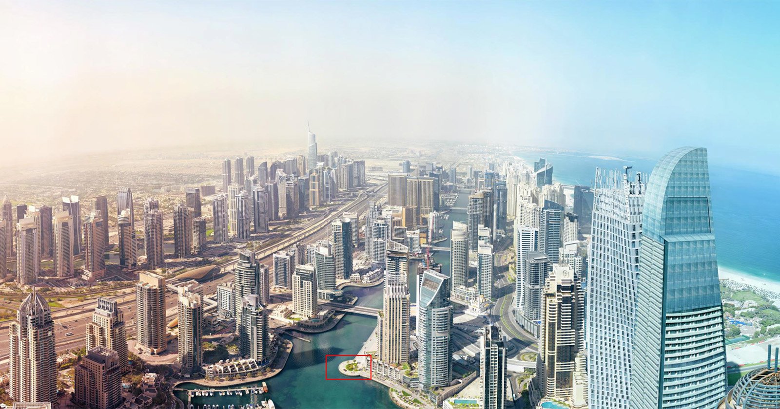 The NASA-derived gigapixel camera system was suspended 264 metres up the Cayan Tower, where it had to contend with “40-degree heat that created a haze and 25 km/h winds that threatened to disrupt stability.”