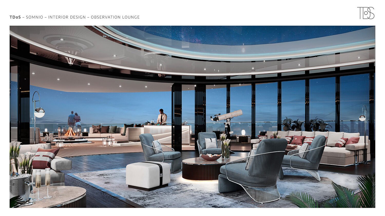 Ranging from 1,600 square feet all the way up to a far more generous 6,500 square feet, according to Robb Report, the biggest residence available spans almost the entire top deck. The 39 apartments aboard Somnio will be distributed across six levels, accompanied by the usual resort-like amenities of exclusive 6-star resorts: fully-equipped kitchen, inside + outside dining spaces, private balcony/terrace, dressing rooms, library, gym, 270-degree forward views, so forth; along with communal niceties such as a lounge in the shipโs bow, bars, restaurants, 10,000-bottle capacity wine cellar + tasting room, onboard beach club, water sports facilities, and concierge services catering for every possible need.
