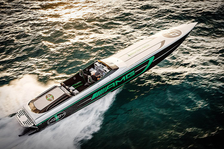 Mercedes-AMG have again teamed up with racing boat makers Cigarette and this time, theyโve left nothing on the table. Now the eighth edition of this partnership, theyโve taken this design to the next level and this is by far the most impressive yet โ the 3,100 hp Mercedes-AMG Marauder, inspired by the carmakerโs latest supercar, the AMG GT R.