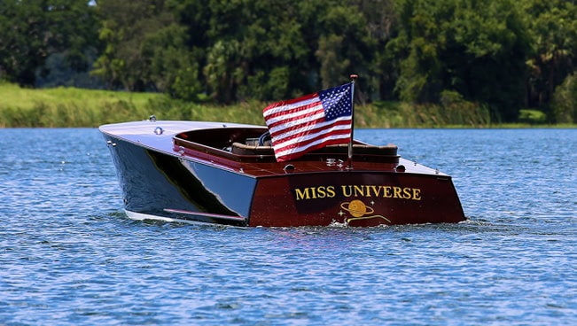 The musical notes in question came from the V12 of arguably Floridaโs most beautiful boat: A mahogany timber hot rod named โMiss Universeโ. She is the 33-foot timber baby of Warren Greatbatch, the son of Wilson Greatbatch who invented the pacemaker.