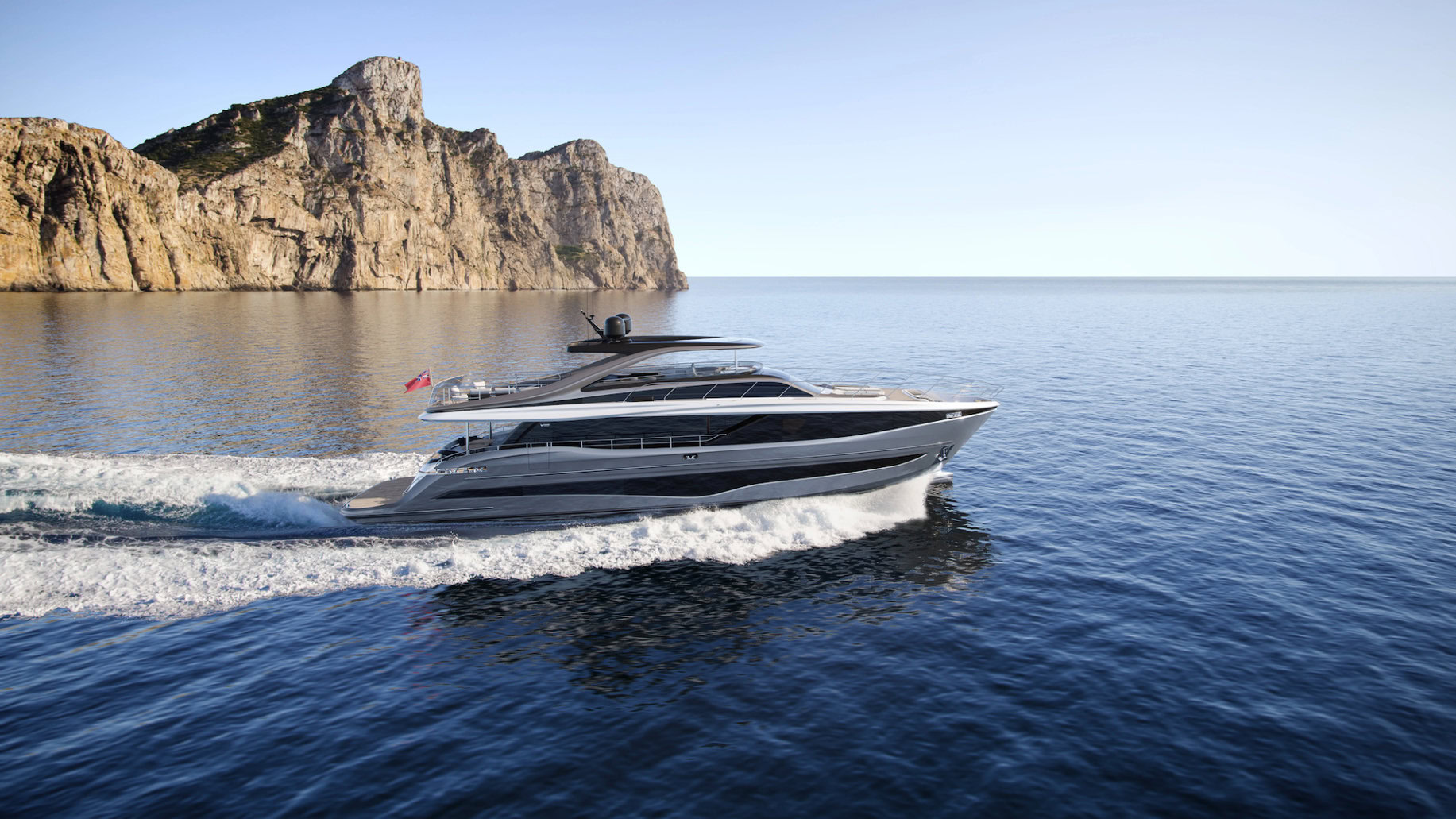 Measuring 29.1m in length, this latest Pininfarina and Olesinski-designed vessel from Princess Yachts differs from the X95 from the lower deck upward, boasting an open flybridge area as well as a raised pilot house and flybridge helm. With a top speed of between 22-24 knots thanks to twin MAN V12-2000 engines, the Y95 has space enough for ten guests in total across five cabins, one of which is the full beam and palatially proportioned ownerโs suite.