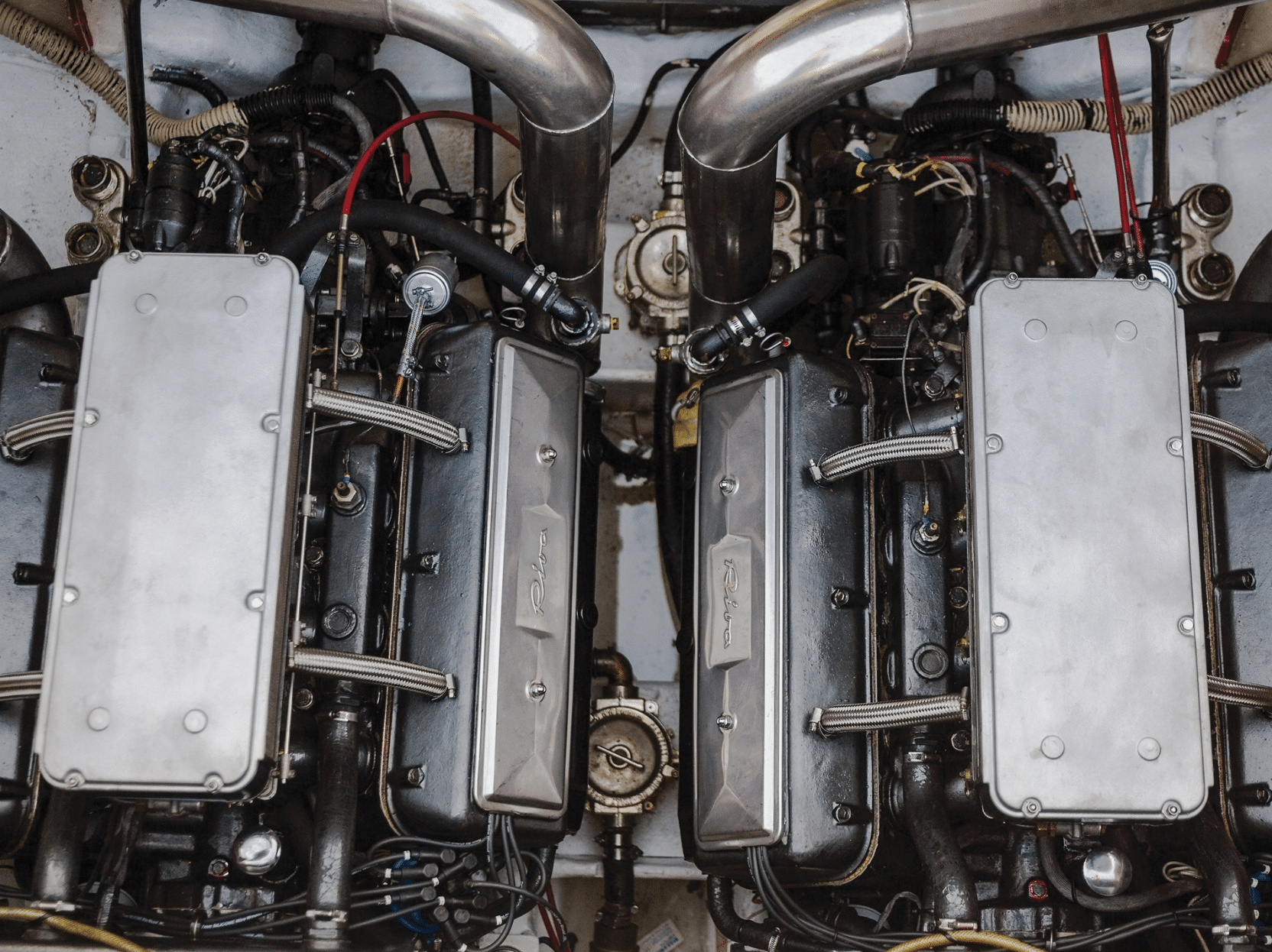 More than just visuals, a Ferrari is about feel, itโs about power. For the Riva Ferrari 32, this power was supplied via two 320 hp, 7,982 cc BPM Vulcano 400 V8 engines. Fortunately for the driver and unfortunately for the local fish, fuel economy and the wellbeing of local environments were not considered during the construction of this beast. The result of these engines is a clean top speed of 100 km/h.