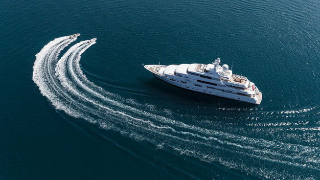 The superyacht offers accommodation for 12 guests that are supported by 21 crew. Guests can enjoy everything from a beach club and a cinema to dual master cabins, as well as a fully-stocked toybox with diving gear and jetskis.
