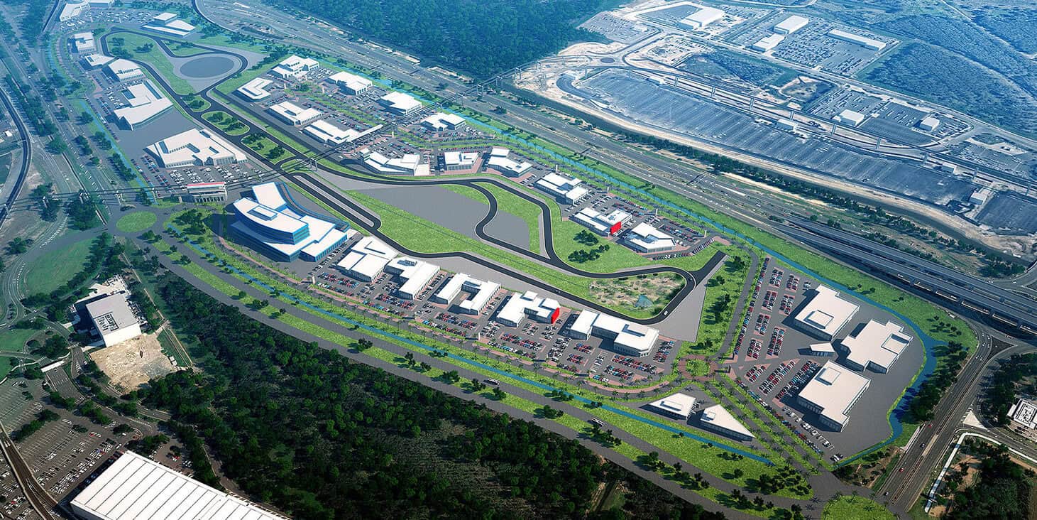 So what exactly is an โAuto Mallโ inclusive of? Fair question. The facility will be an $85 million โstage oneโ chapter of a grander, $300 million development spearheaded by the Brisbane Airport Corporation. Just a 15-minute drive from Brisbane CBD, the BNE Auto Mall is located a few hundred metres south-west of Brisbane International Airport. The project comprises of not just a racetrack, but an all-out automotive precinct of car dealerships, restaurants, cafรฉs, and conference facilities.