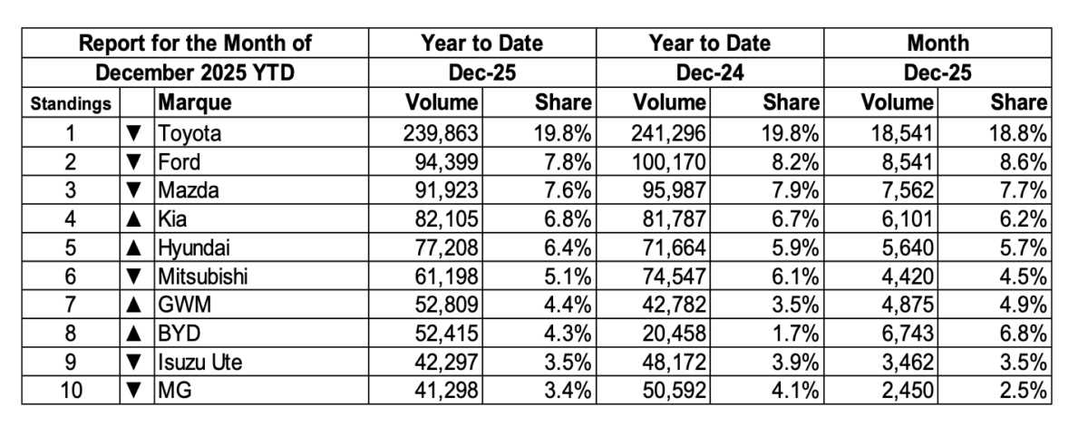 Australia’s Top 10 Best-Selling Automakers (2025)