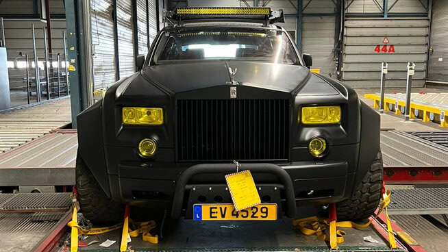 A snapshot of the Thunderbirds-inspired monstrosity wearing Luxembourg plates was captured at Schiphol Airport in the Netherlands. Accommodating its third axel under an extended rear which sports a modified boot lid, this customised pre-facelift Series 1 (year unknown) also features yellow-tinted headlamps and driving lamps โ which Drive has rightly indicated are now illegal on modern cars โ front and rear push bars, as well as a tow hitch.