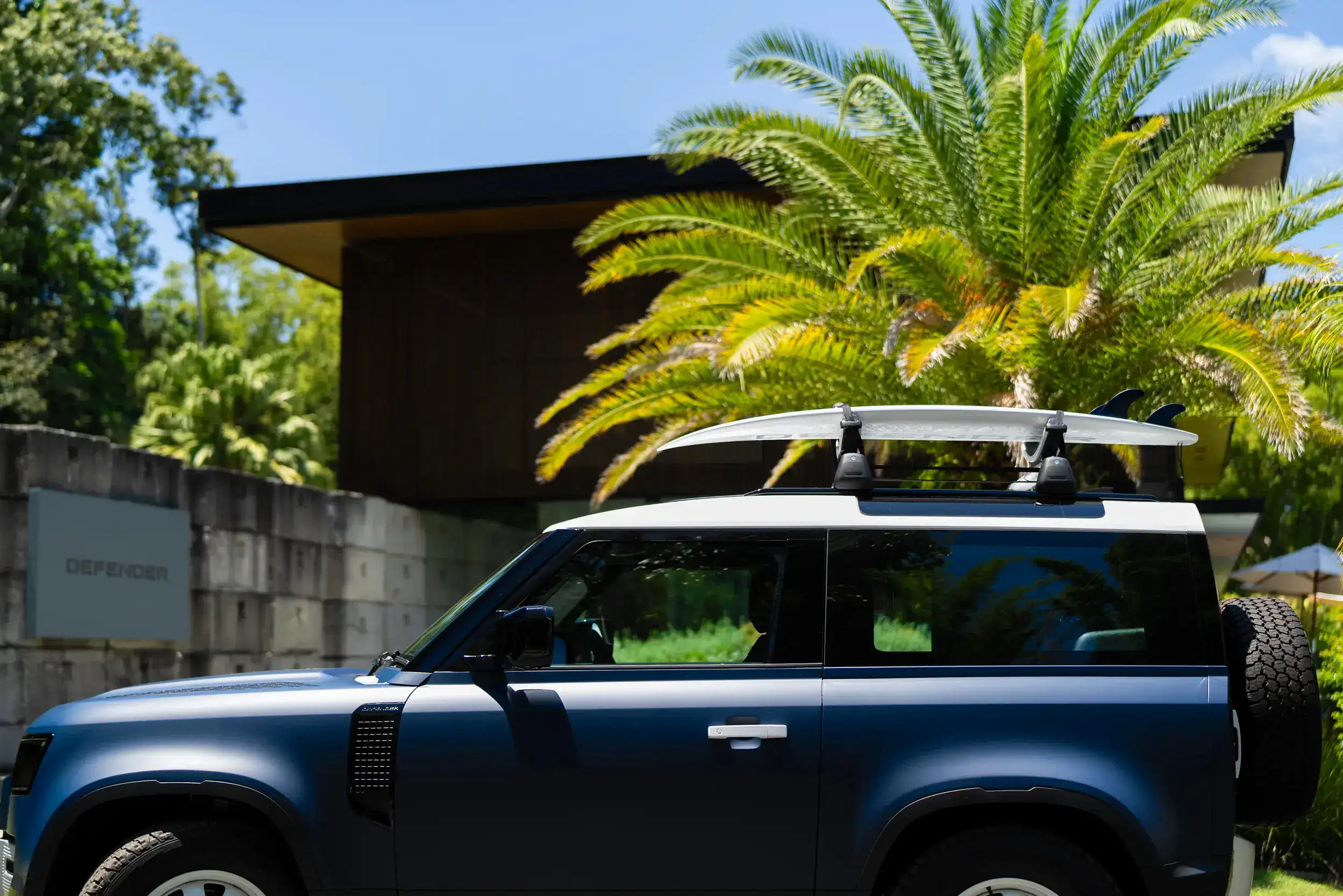 Outdoor aficionados will froth the black side-mounted gear carrier, portable rinse system, and surf ski/kayak rack that carries a custom DEFENDER-branded Hayden Shapes board.