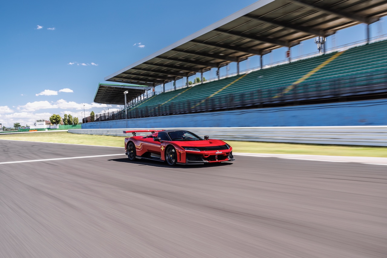 I really wish I hadn’t watched that video before arriving at the media launch — limited to just 20 journalists globally — at Italy’s Misano circuit. And I really didn’t enjoy the pre-drive briefing, where we were told the track was chosen because it includes one corner where you can hit the apex at 250 km/h — the exact speed at which the F80 generates its maximum downforce: over one tonne.