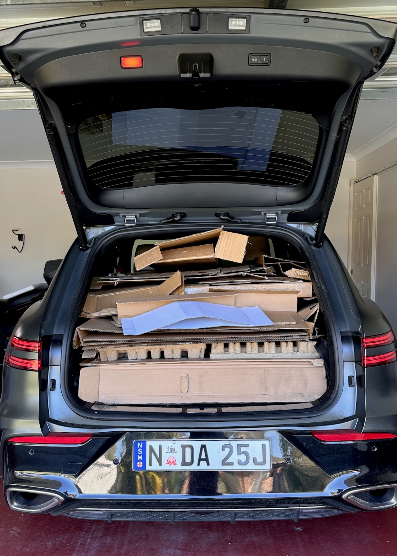 Coming home from the tip, I had a quick squirt in Sports Mode and thoroughly enjoyed it. The shift from third into fourth at 5500rpm is delightful and the composure into and through corners is impressive. It failed to shift down at one point but I can forgive that given itโs a family SUV, and a spritely performer at that. I still love the paint โ in the sun the green glimmers and in the shade it could be mistaken for black, and weโre averaging between 20-25 litres of fuel a week which is more than manageable in terms of running costs (especially if you factor in not having to pay for servicing). Ultimately, itโs a great car getting letting down by arbitrary and completely resolvable โ in most cases software โ issues.