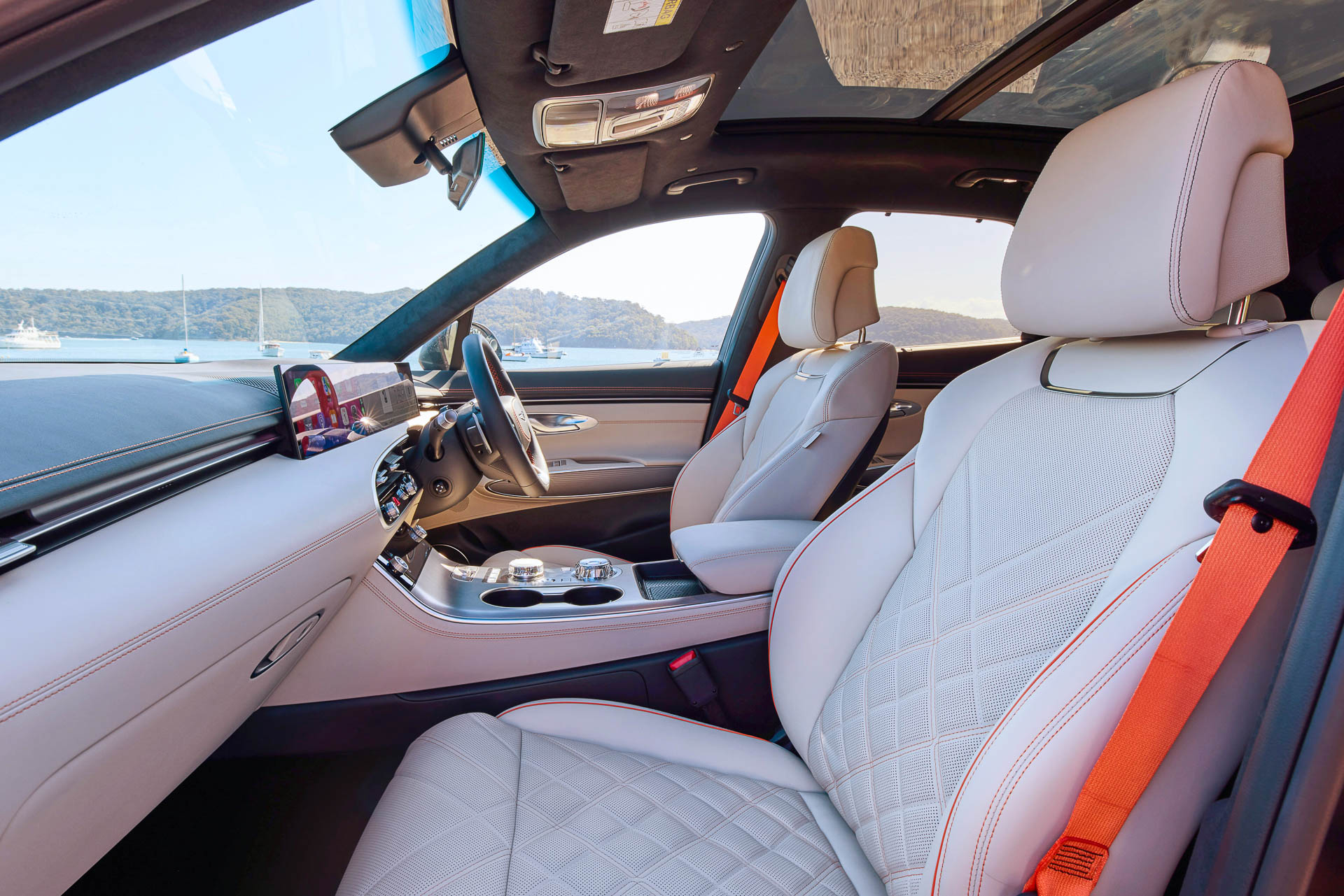 I appreciate the additional consideration for the iPhone camera too, with the charging area slightly raised in the centre so your phone sits flat. The singular infotainment and instrument cluster screen is a seamless 27-inch OLED display that looks like the cabin was designed around it, not an afterthought, which so many brands get so wrong.
