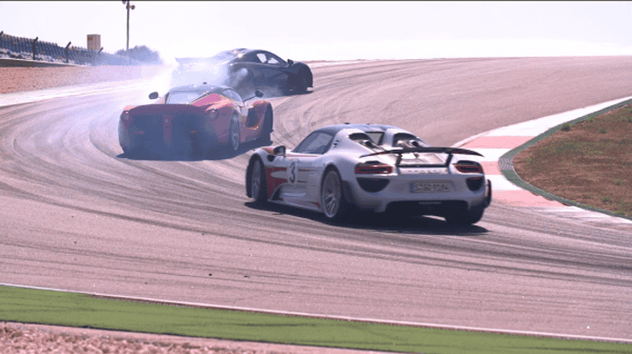 With the Top Gear boys sidelined for the minute, petrolheads must now rely on the generosity of private enthusiasts for their dose of insane head to head races. Fortunately for us, a bloody wealthy man with a penchant for the ridiculous by the name of Paul Bailey thought it was a good idea to hand over the keys to his Mclaren P1, Ferrari LaFerrari, and Porsche 918 Spyder to the boys at Supercar Driver for a spot of racing.