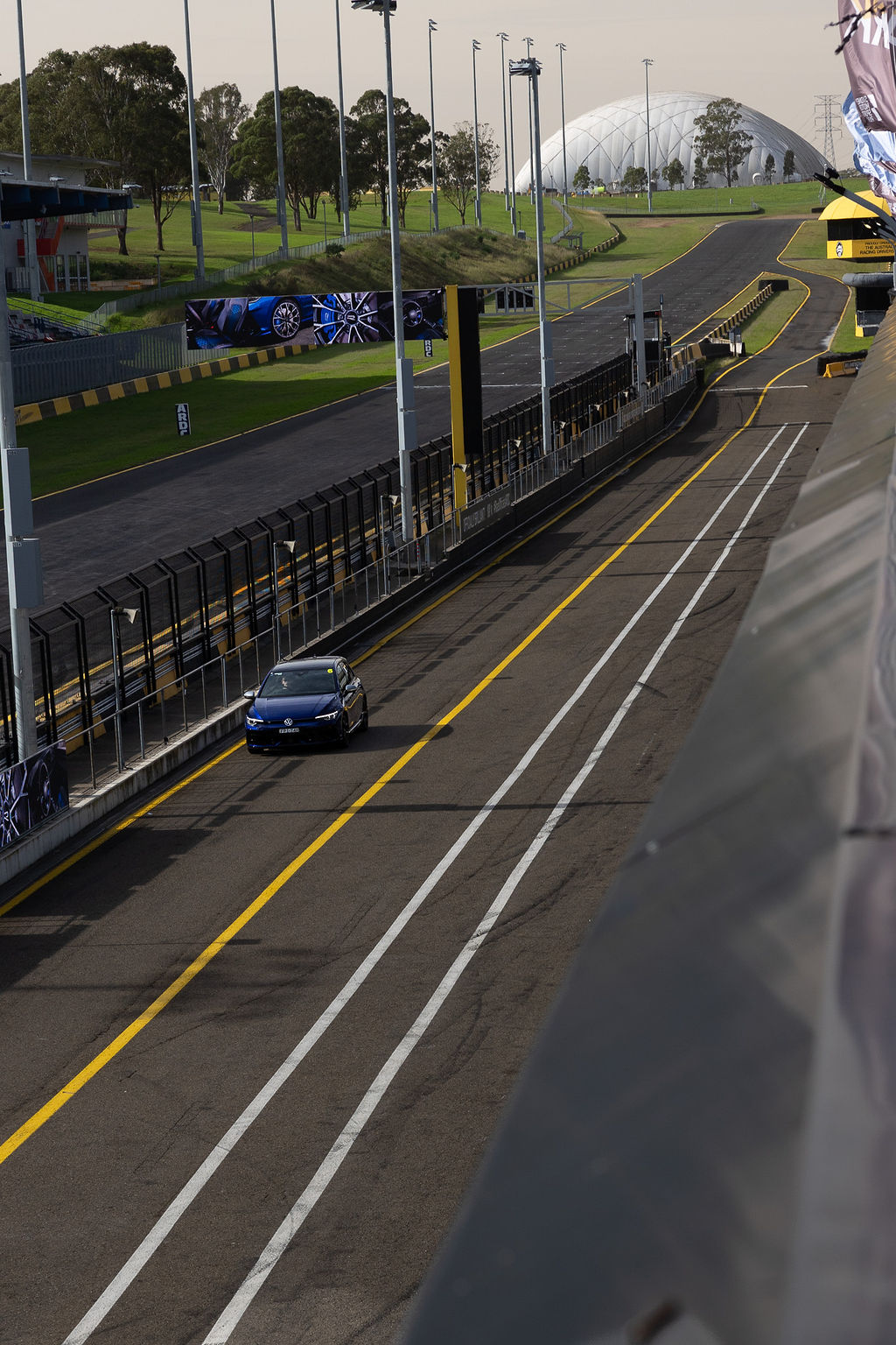 Morning comes, and after having the previous day’s debris sprayed off the car at Sydney Motorsport Park I join the track – the R’s speed and effectiveness continues to impress with the smarter torque vectoring feeding power to the right wheels at the right time, dragging me around the sharp left-hander that is turn two nicely, the brakes are strong and durable with a reassuring feel through the pedal, but misjudge a faster corner by even a little and the car won’t hesitate to push wide – classic Golf R then.