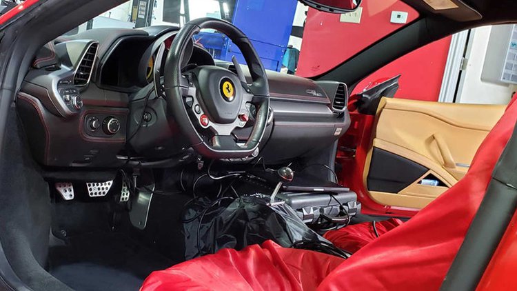 Unlike the F430, which did have a manual option from the factory (which was utilised in the Scud conversion), the transmission in the 458 needs to be swapped out for a new six-speed transmission because it only offered a dual-clutch.
